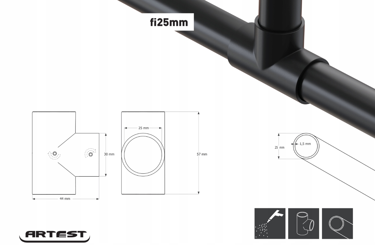 З'єднувач триходовий з замком для труби, меблевої штанги, меблевого з'єднувача, діаметр 25 мм, колір чорний матовий, виробник Польща