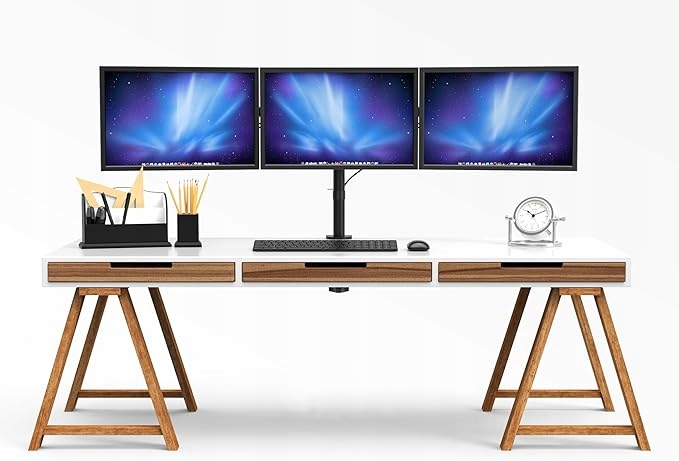 - Міцний сталевий тримач для 3 моніторів - кріпить три екрани один до одного, практичне місце на столі. Для трьох 33 см - 68,5 телевізорів або моніторів з навантаженням 10 кг