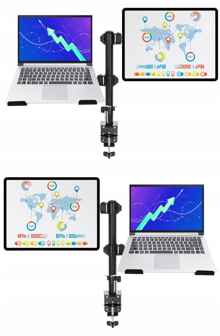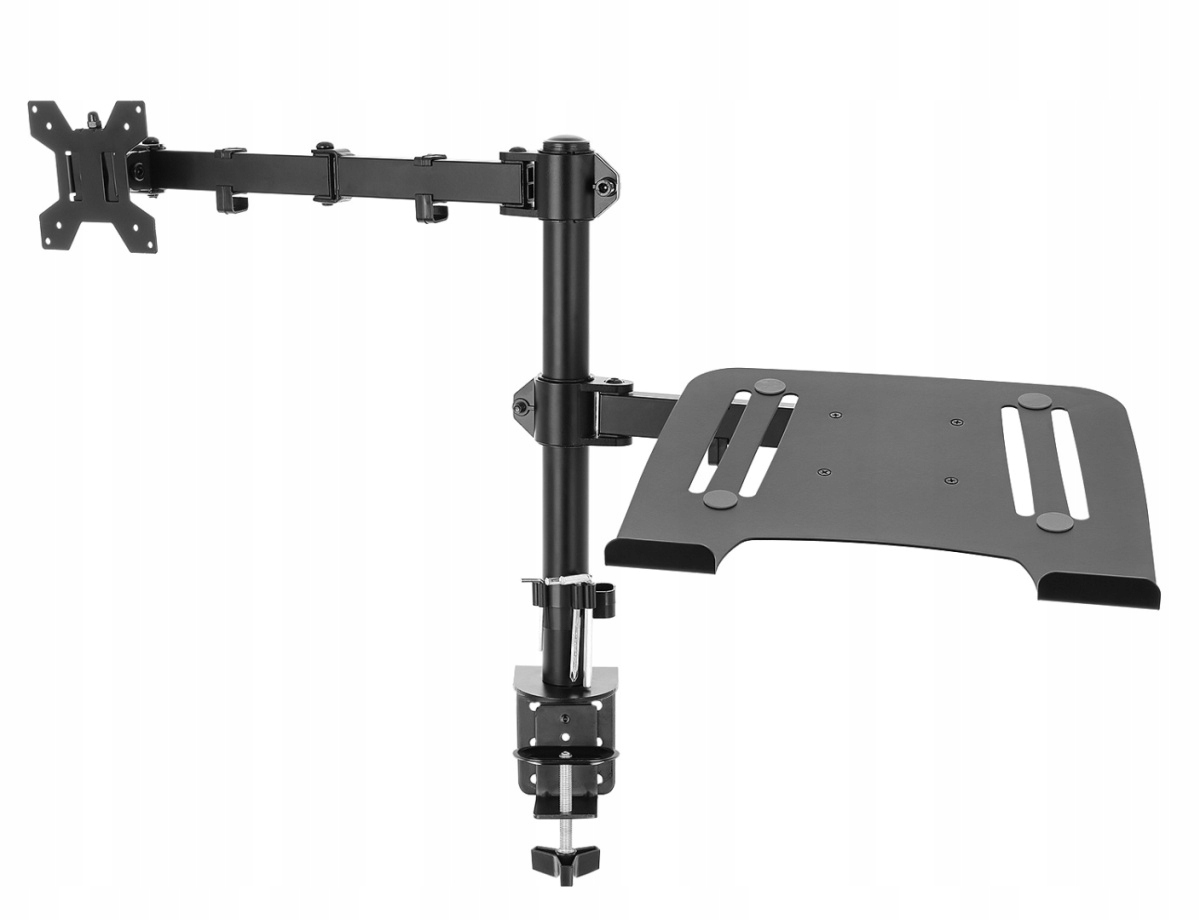 Поворотний тримач для ноутбука та монітора Vetouson VX-141 — це практичне та функціональне рішення, яке дозволяє ефективно організувати робоче місце та оптимізувати простір на робочому столі. Тримач був спеціально розроблений для того, щоб можна було встановити монітор розміром від 10 до 32 дюймів і ноутбук з діагоналлю до 17". Користувач може регулювати сторони, на яких розташовані пристрої, регулювати висоту, відстань і нахил, що підвищує ефективність роботи та покращує комфорт використання Рукоятка виготовлена з твердих матеріалів, що забезпечує стабільність та надійність.