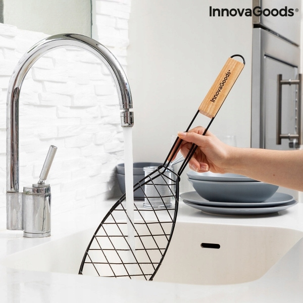 Керувати ним дуже просто: просто посуньте запобіжне кільце, відкрийте решітку, покладіть рибу без очищення від накипу, закрийте решітку та знову посуньте запобіжне кільце, щоб решітка була щільно закрита. . Решітку потрібно поставити на вугілля або інше джерело тепла (ніколи не на прямий вогонь) і повернути її на іншу сторону, щоб риба добре пропеклася з обох сторін. Його можна використовувати в різних типах грилів (вугільний, газовий, дров’яний тощо), але ніколи не контактувати з полум’ям. Також можна готувати інші страви. Легко очищається після кожного використання, але не можна мити в посудомийній машині. Крім того, він легкий і зручний для транспортування та зберігання.