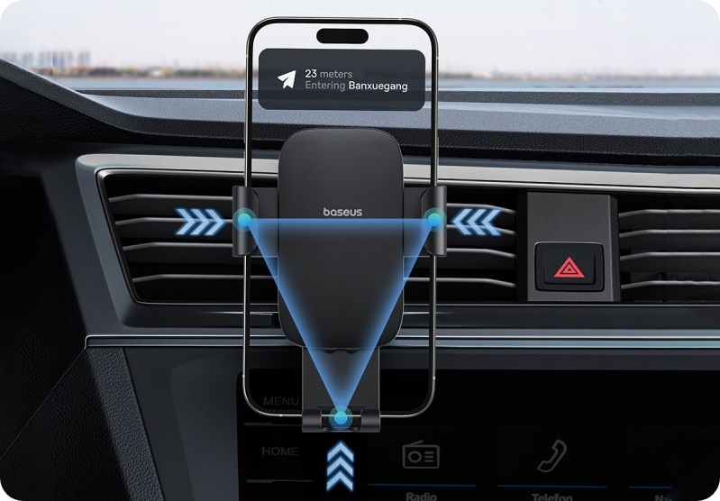 - Стабільність і безпека: трикутна гравітаційна структура забезпечує додаткову стабільність, захищаючи телефон від падіння навіть у складних дорожніх умовах.