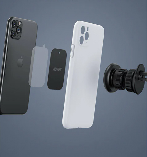 Тонкий металевий елемент (один із двох) можна розмістити на задній панелі пристрою або за захисним футляром. Виріб має дуже високу силу притягання завдяки вбудованим 4 магнітам.