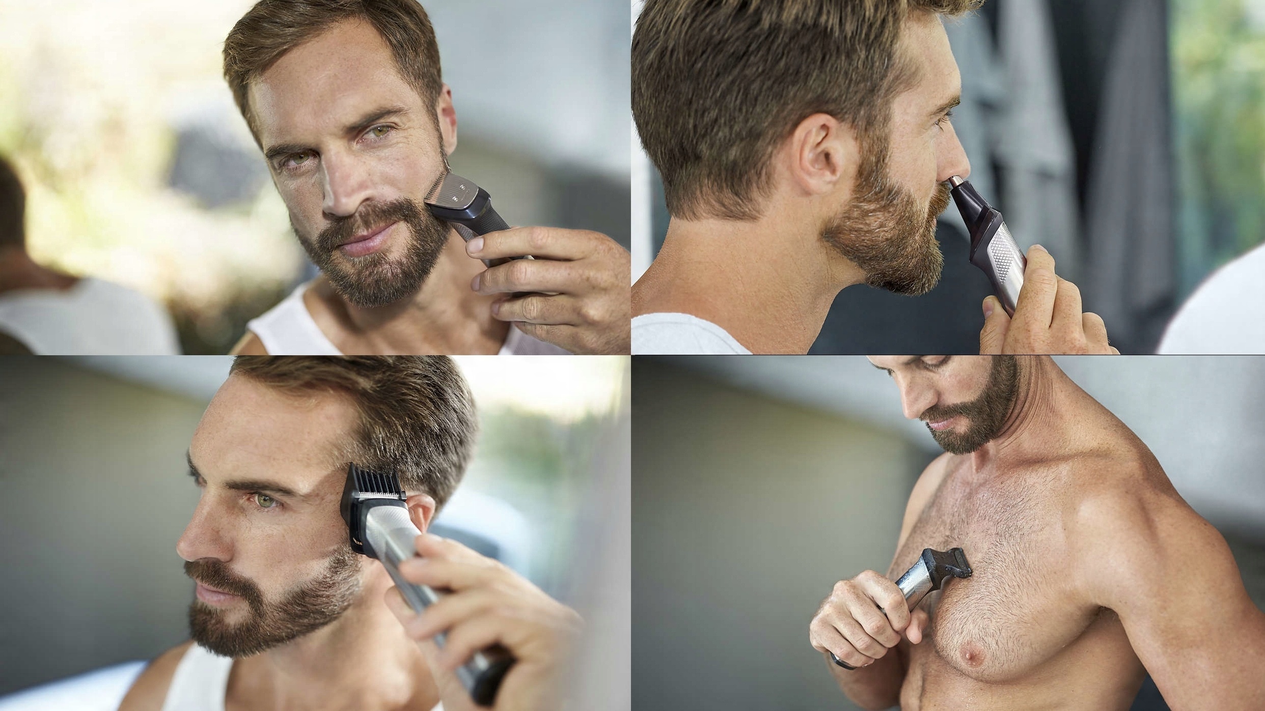 - Цей універсальний тример зручно підстригає та укладає волосся на обличчі та підстригає волосся на тілі.