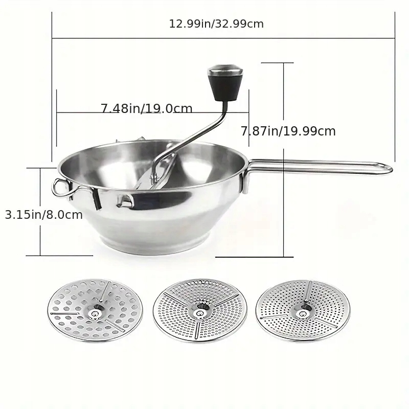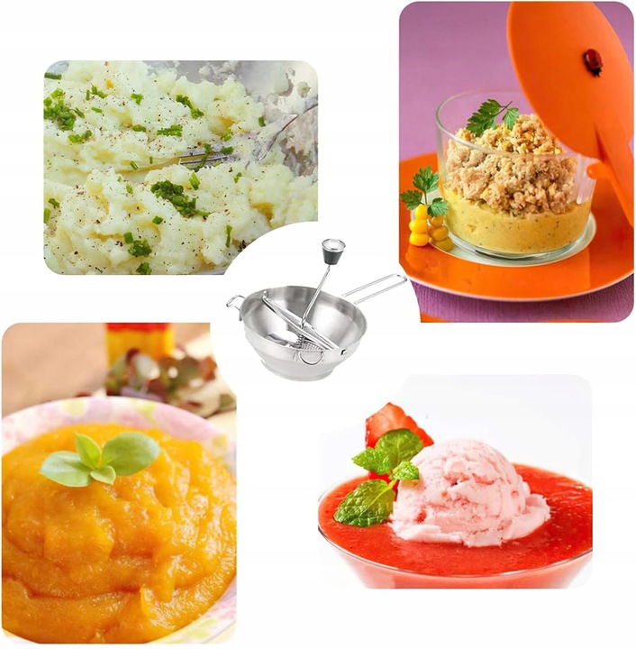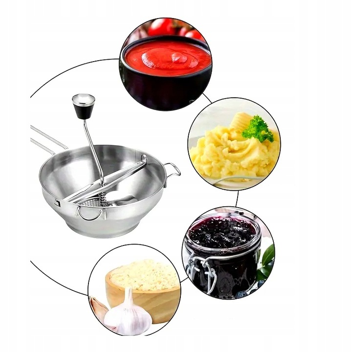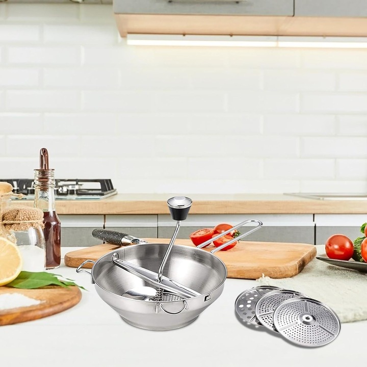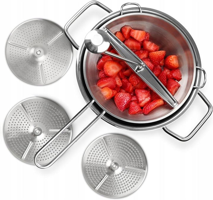 ➤ Універсальність приготування. Цей прес для картоплі пропонує можливість створювати різні консистенції їжі, будь то дрібне пюре, пюре середнього розміру або шматки їжі. Різноманітні диски з отворами надають широкі можливості підготовки. Його можна використовувати, наприклад, як картопляний прес для приготування картопляного пюре, як соковижималку, а також для виробництва яблучного пюре.