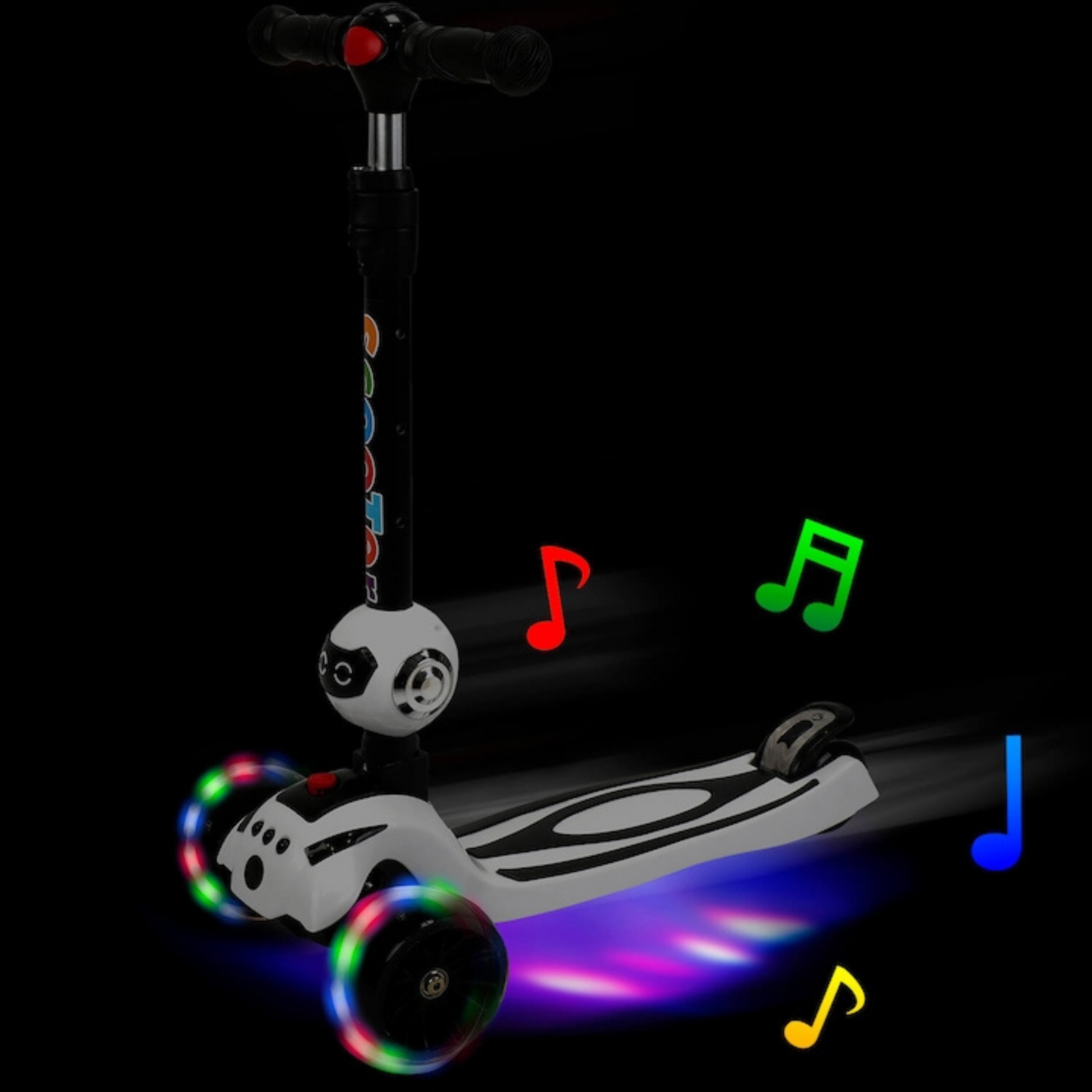 Trójkołowa Składana Balansowa Dziecięca ŚWIECĄCA Hulajnoga Biały Robocik