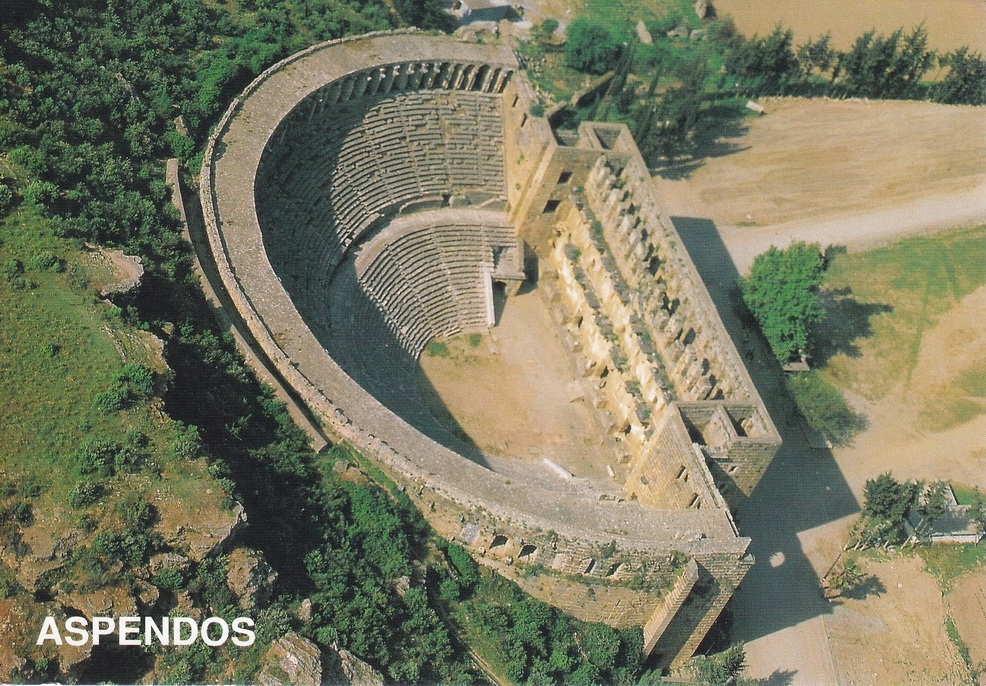 türkiye - aspendos - театр - амфітеатр - з пташиного погляду. новий. Немає ланцюга. Умова - дуже хороший. Формат 11,7 х 16,8 см.