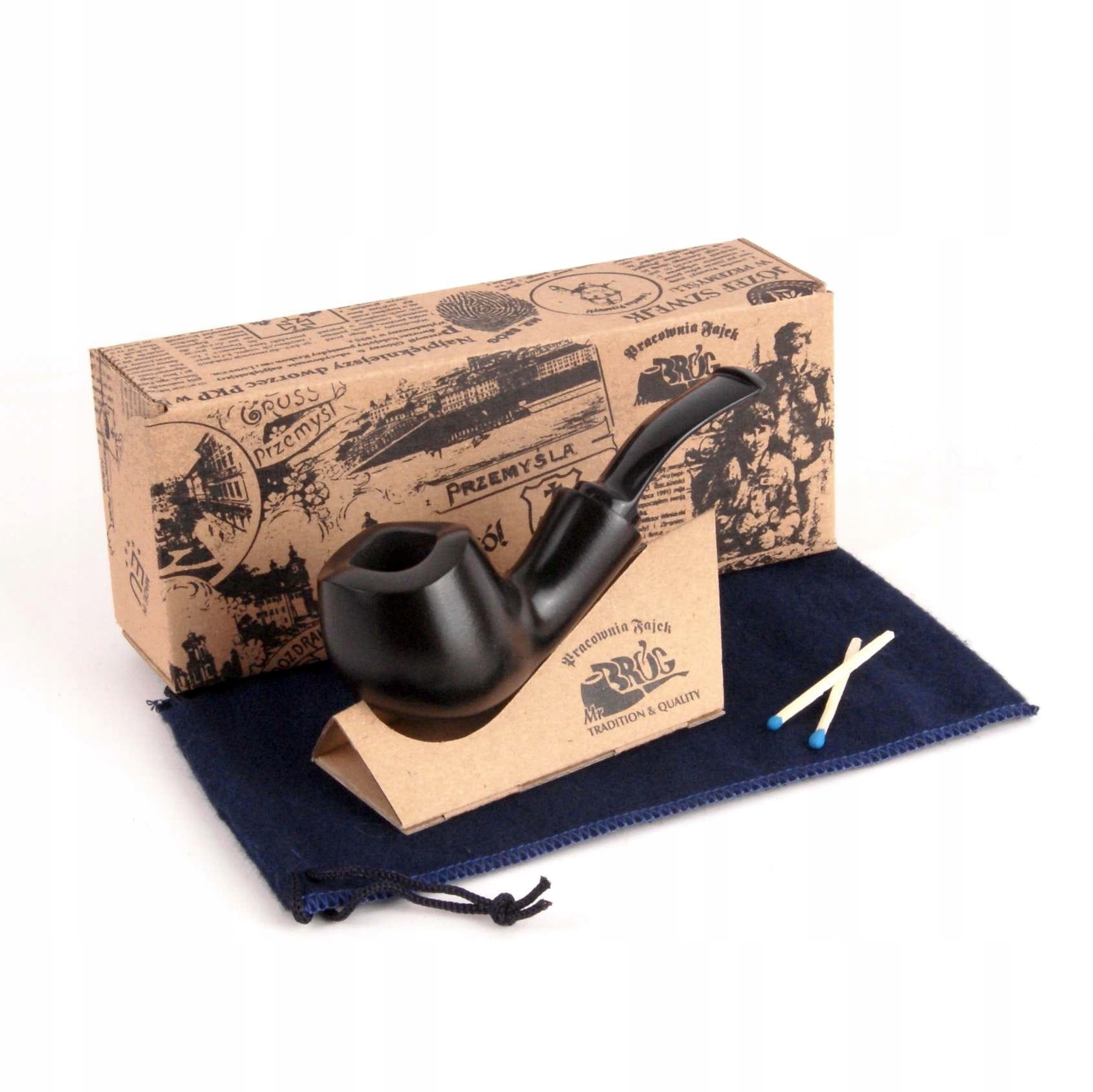 Цікава модель курильної трубки, створена з урахуванням зручності та комфорту курця. Він поєднує в собі компактні розміри і досить місткий, попередньо навуглений камін. Наконечник люльки з цікавою формою і нерівним обідком виготовлений у нашій майстерні з польської груші. Точно підігнаний вигнутий мундштук зі змінним вугільним фільтром діаметром 9 мм. Люлька упакована в коробку Mr Bróg і підійде для навчання курінню тютюну.