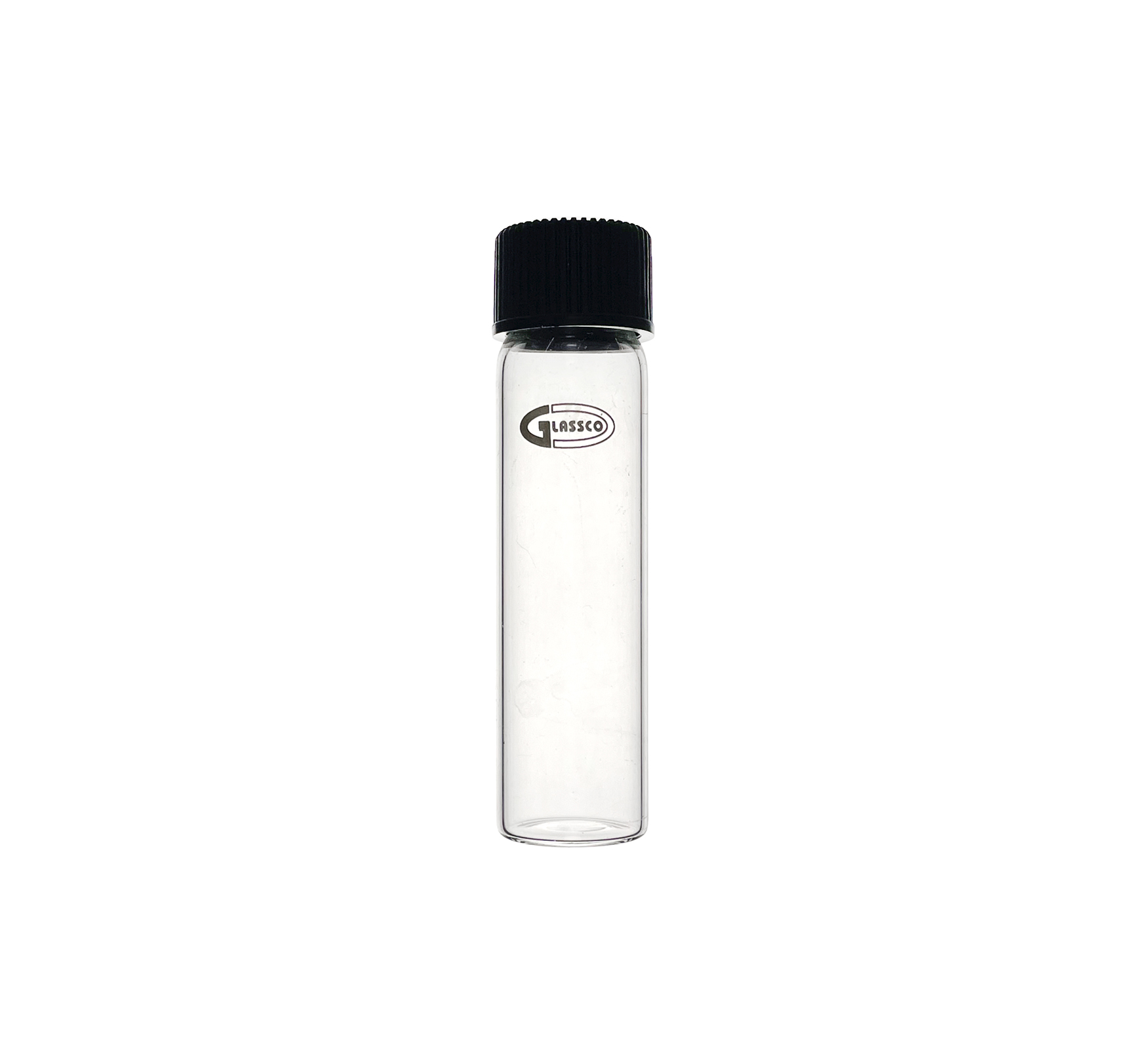 Скляна пробірка з плоским дном і кришкою, що закручується.