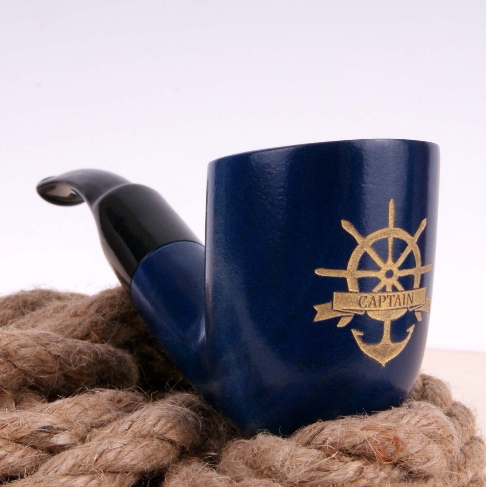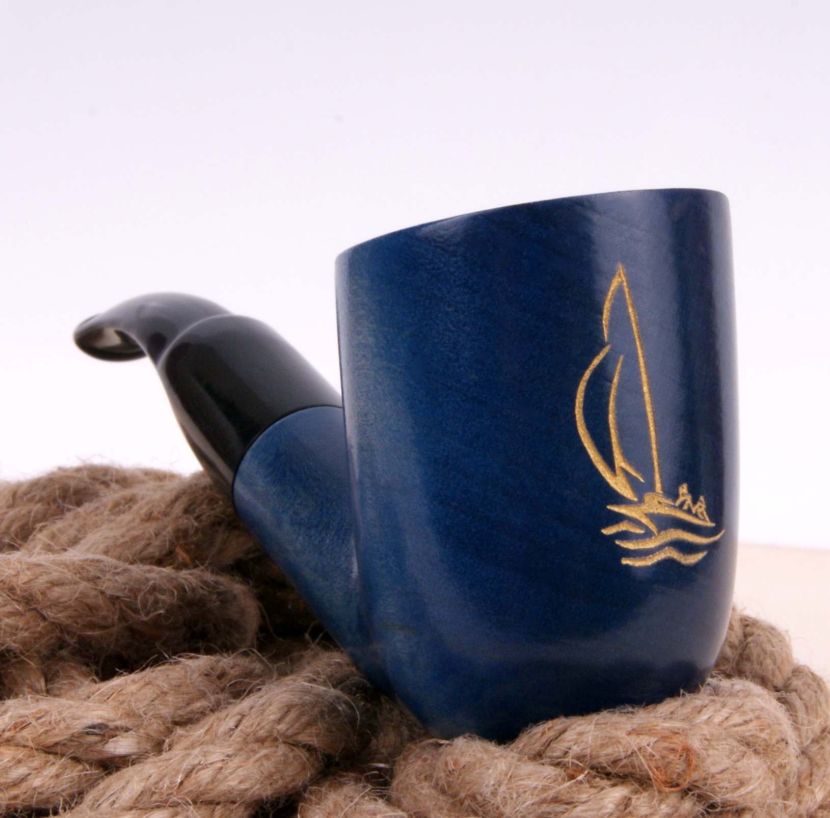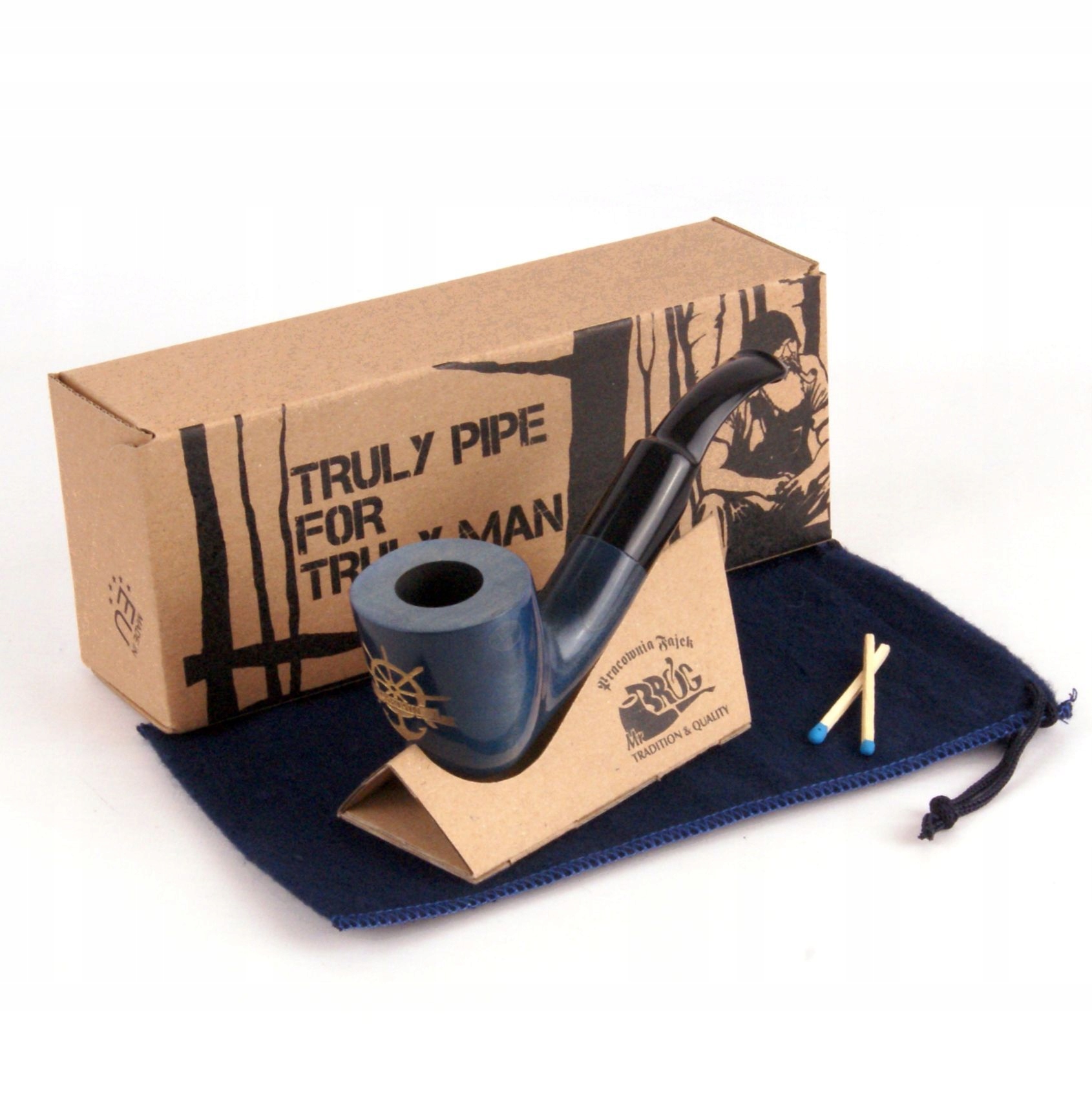 Акуратна люлька цікавої форми, ручної роботи зі старовинного польського дерева груші. Мотиви, розміщені на синій голові, відносяться до морського і вітрильного клімату, адже запалена люлька є атрибутом багатьох капітанів. На вибір два візерунки. Камера згоряння має стандартний об'єм і захищена прекарбонатом. Злегка вигнутий мундштук має місце для 9-мм фільтра. Трубка упакована в призначену для нашої студії коробку.