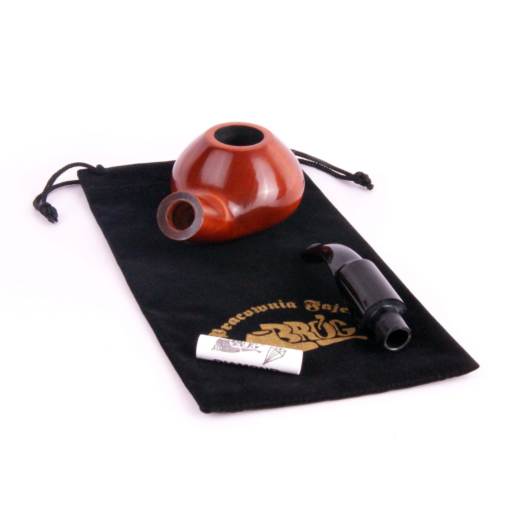 Оригінальна труба в стилі «Помідор», що характеризується масивним оголовком, товстими стінками топки і компактною конструкцією. Ручна робота в нашій майстерні біля Перемишля зі спиляної пізньої осені деревини груші. Камін невеликої місткості, покритий прекарбонатом. У мундштуку є місце для змінних фільтрів діаметром 9 мм. Люлька підходить для навчання курінню, упакована в коробку Mr. Рік. ПРИМІТКА: природні труби не забарвлені і можуть мати видимий склероз, тобто світліші та темніші ділянки, що є результатом природного росту грушевого дерева.