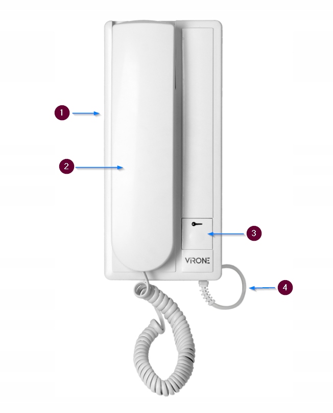 ❗ Живлення трубки здійснюється безпосередньо від мережі 230В. Працює з дверною станцією DP-16KD.