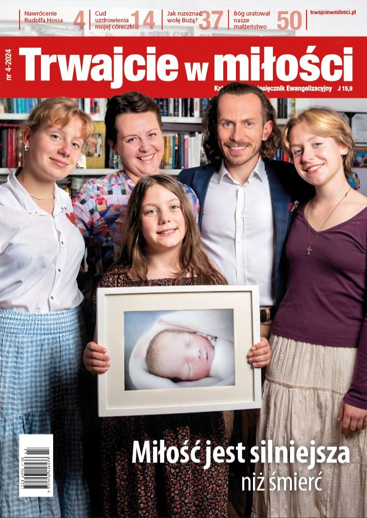 У новому випуску «Stay in Love» (4-2024):❤️‼️\n📌«В'язниця, лікарня та зцілення доньки» - зворушливе свідчення Норберта, який покинув злочинне життя й повністю присвятив себе до догляду за його хворою дочкою.\n 📌 «Диво Євхаристії в житті Марти Робін» - стаття про містика і стигматика, який їв тільки Євхаристію протягом 50 років.\n📌 «Розберрі змінила наше життя» - Дівчинка померла незабаром після народження. Близькі Ружички свідчать, що її життя було для них великим подарунком.\n📌«In vitro – життя ціною смерті» – лікар Тадеуш Василевський працював у клініці in vitro, сьогодні, як напротехнолог, він пояснює, як виникає безпліддя. лікувався.\n 📌 «Йога привела мене до спроби самогубства» - свідчення Мацея, який кілька років практикує йогу, медитацію та дихальні практики.\n📌 «Бог врятував наш шлюб» - зворушливе свідчення про відновлення шлюбу в якому бракувало спілкування, довіри, вірності та любові.