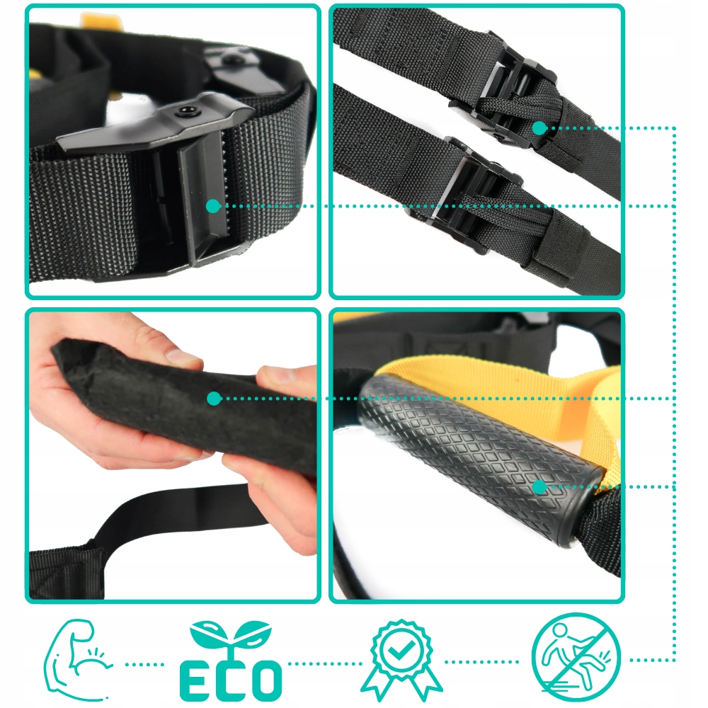 ✅ Набір складається з якісних ременів, металевих затискачів із зубчиками, кулісок з гумками, подовжувача з карабіном та т.зв. дверний анкер. Ви можете використовувати набір залежно від ваших потреб. За бажанням ви також можете придбати наш гачок до набору, який ідеально підходить до набору.