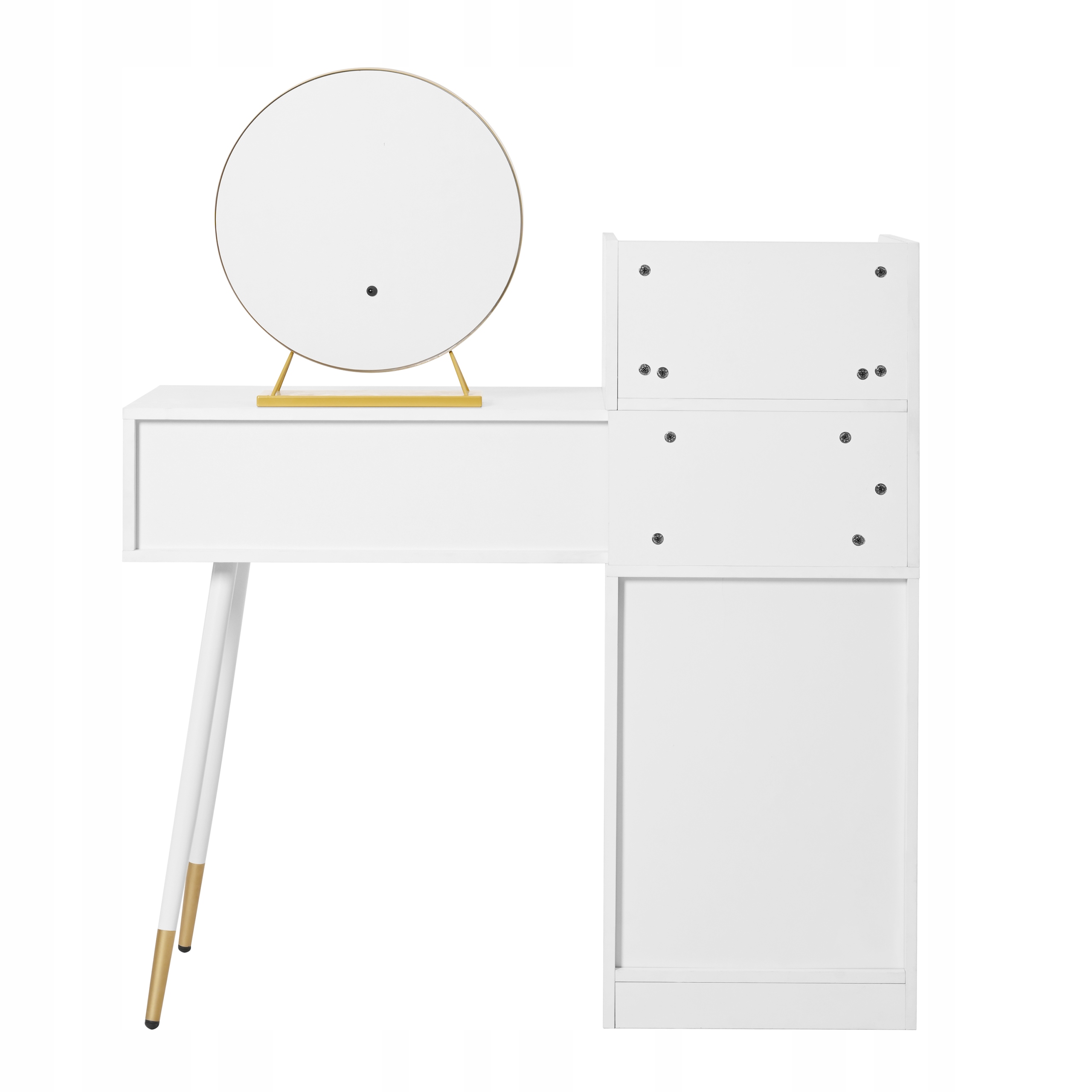 туалетний стіл із складовою верхом, 6 ящиків та золотих ручок, світлодіодне дзеркало з затемненим світлом, білим, розмірами: 102 x 100 x 41,5 см (висота x ширина x main). Табурет не прикріплений.