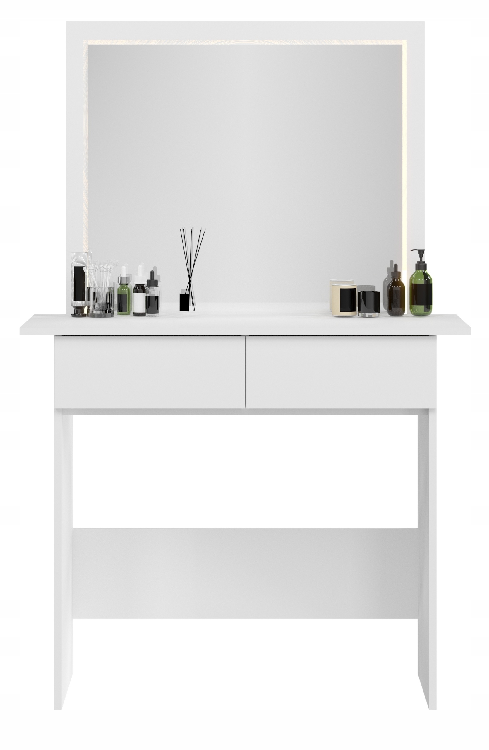 Білий туалетний столик із великим дзеркальним світлодіодним освітленням 2 ящики спальні