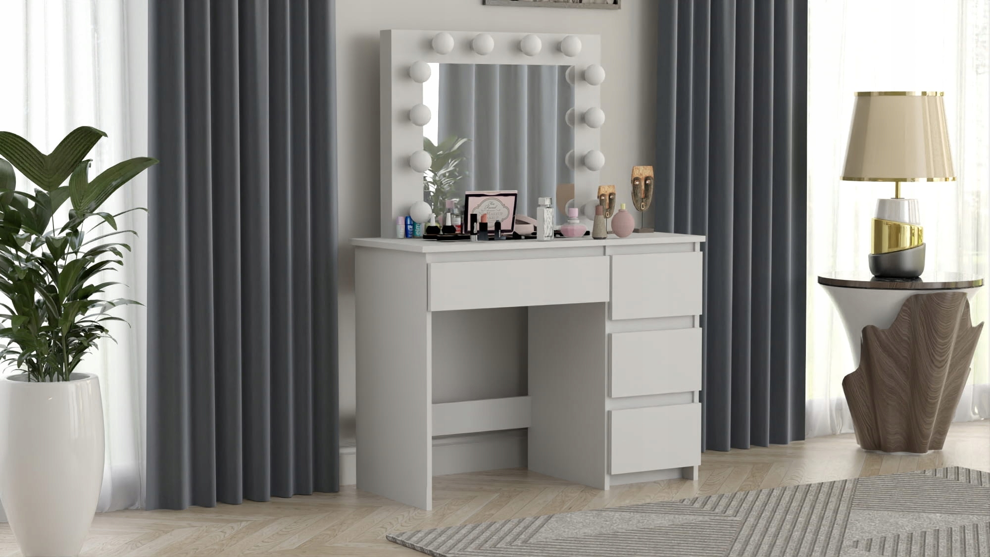 ДЕТАЛЬНИЙ ОПИС Туалетний столик OLA4 - ідеальне поєднання стилю, функціональності та доступної ціни. Виконана в голлівудському стилі, вона стане не тільки практичним місцем для повсякденного макіяжу, але і елегантним елементом декору спальні або гардеробної.