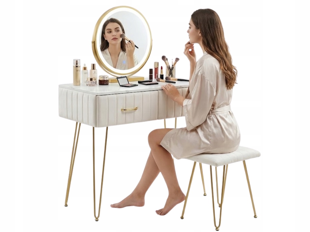 ТУАЛЕТНИЙ СТОЛИК LUXURO БЕЖЕВИЙ ВЕЛЮР,ТАБУРЕТ ДЗЕРКАЛО СВІТЛОДІОДНЕ
