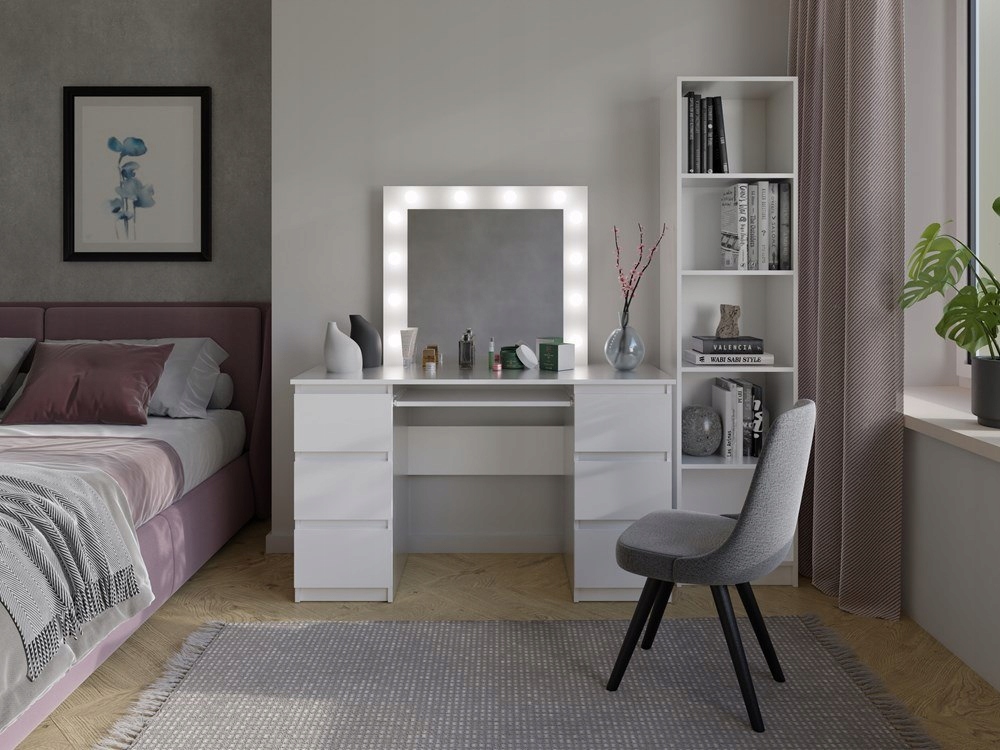 Туалетний столик із дзеркалом і світлодіодним підсвічуванням є ідеальним предметом меблів для люди, які цінують комфорт і красу свого будинку. Продумана конструкція дозволяє зручно зберігати косметику та прикраси, а також може виконувати роль практичного письмового столу.