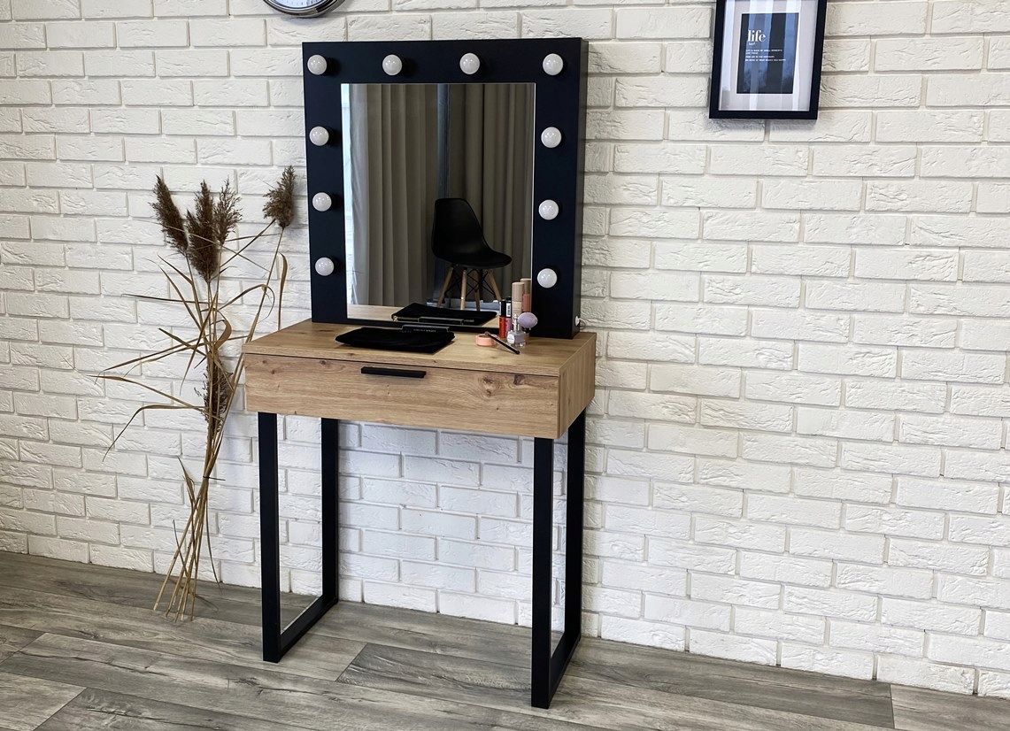 ВОДІЙНИЙ ТУАЛЕТНИЙ СТОЛИК З ЛАМІНУВАННОЇ ДОЩКИ ДУБ ARTISAN + ЧОРНИЙ КОЛІР