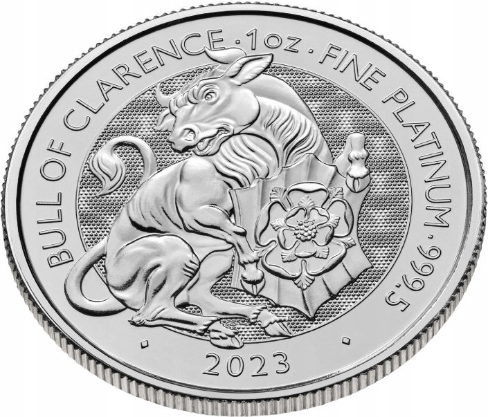 Королівські звірі Тюдорів: платинова монета «Бик Кларенса» номіналом 1 унція 2023 року — це третя монета з другої серії «Королівські звірі Тюдорів». На колекційній монеті зображено один із десяти геральдичних королівських звірів – бика Кларенса. Продукт дозволяє зацікавитися надзвичайно цікавою історією Великої Британії.