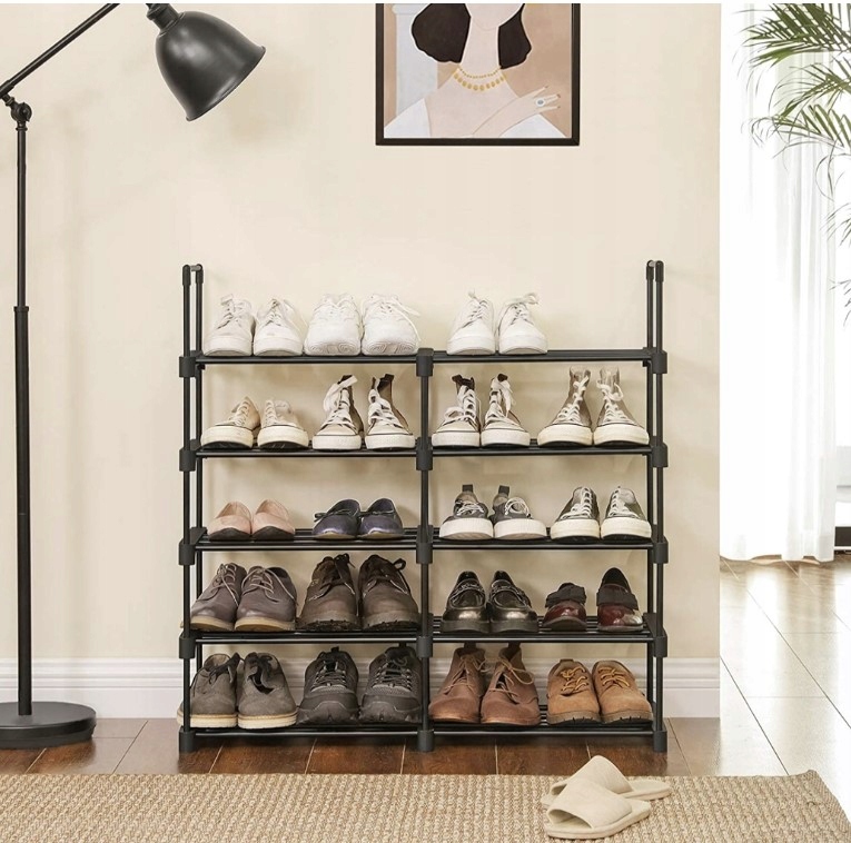 - Наведіть порядок у своєму житті: ця компактна полиця для взуття дозволить вам оптимально використовувати вертикальний простір і зберігати всі ваші улюблені кросівки в акуратному вигляді; завдяки посиленим металевим трубам він також має хорошу несучу здатність (до 5 кг на полицю).