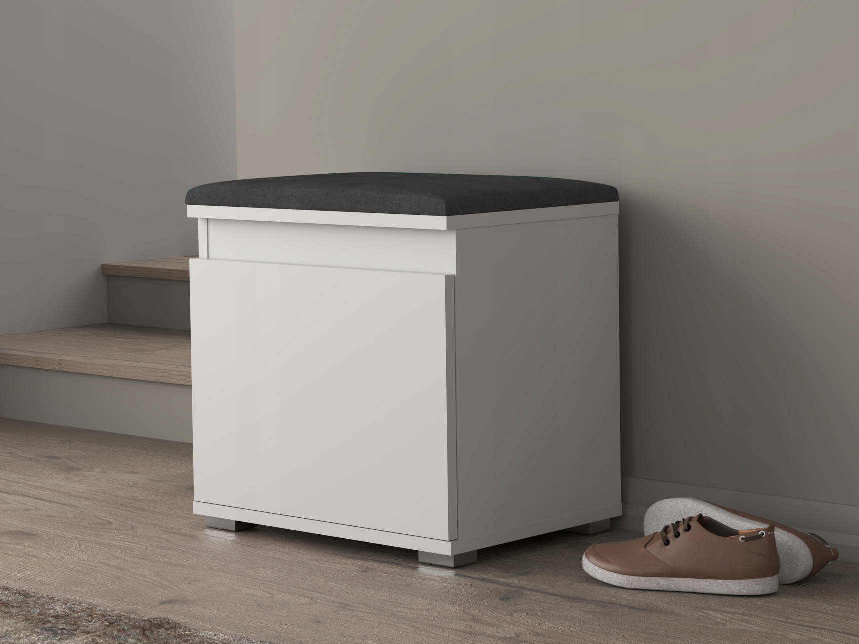 Сучасна тумба для взуття Nevada 50 для передпокою доступна в 3 кольорах: білий, сонома, крафт і з трьома кольорами панелей: сірий, темно-синій, пляшково-зелений.