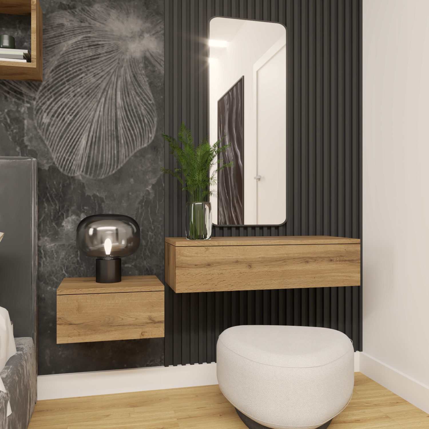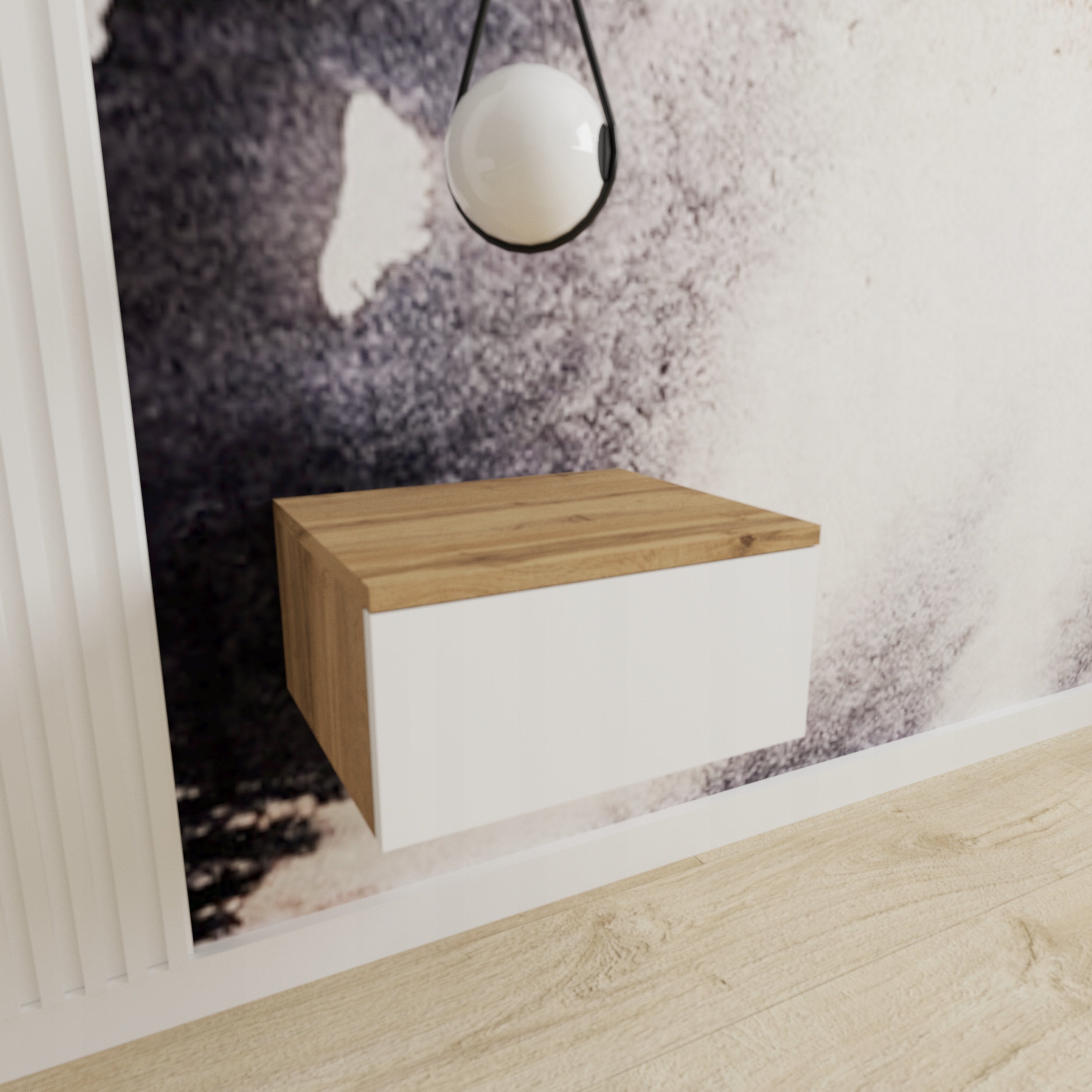 Тумба ідеально підходить для будь-якої спальні для підручних речей, як-от книга, лампа чи улюблена фотографія. Завдяки своєму зовнішньому вигляду підходить як для класичних, так і для сучасних інтер'єрів. Його підвісна форма додасть легкості вашому інтер'єру, а також дозволить зберегти чистотою важкодоступні місця .