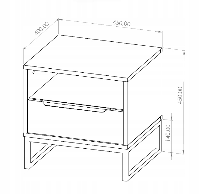 Тумбочка LANDRO, 45 см, гікорі/білий матовий, на металевому каркасі