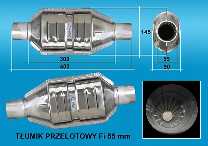 Tłumik przelotowy w obudowie katalizatora Fi 55 mm