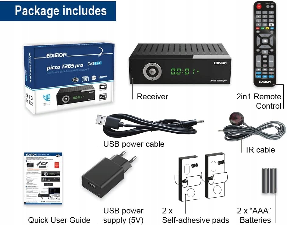 Просматривая «Tuner DVB-T2 Edision Picco T265 Pro», вы можете быть уверены, что данный товар из каталога «[rubrica_name]» будет доставлен из Польши и проверен на целостность. В цене товара, указанной на сайте, учтена доставка из Польши. Внимание!!! Товары для Евросоюза, согласно законодательству стран Евросоюза, могут отличаться упаковкой или наполнением.