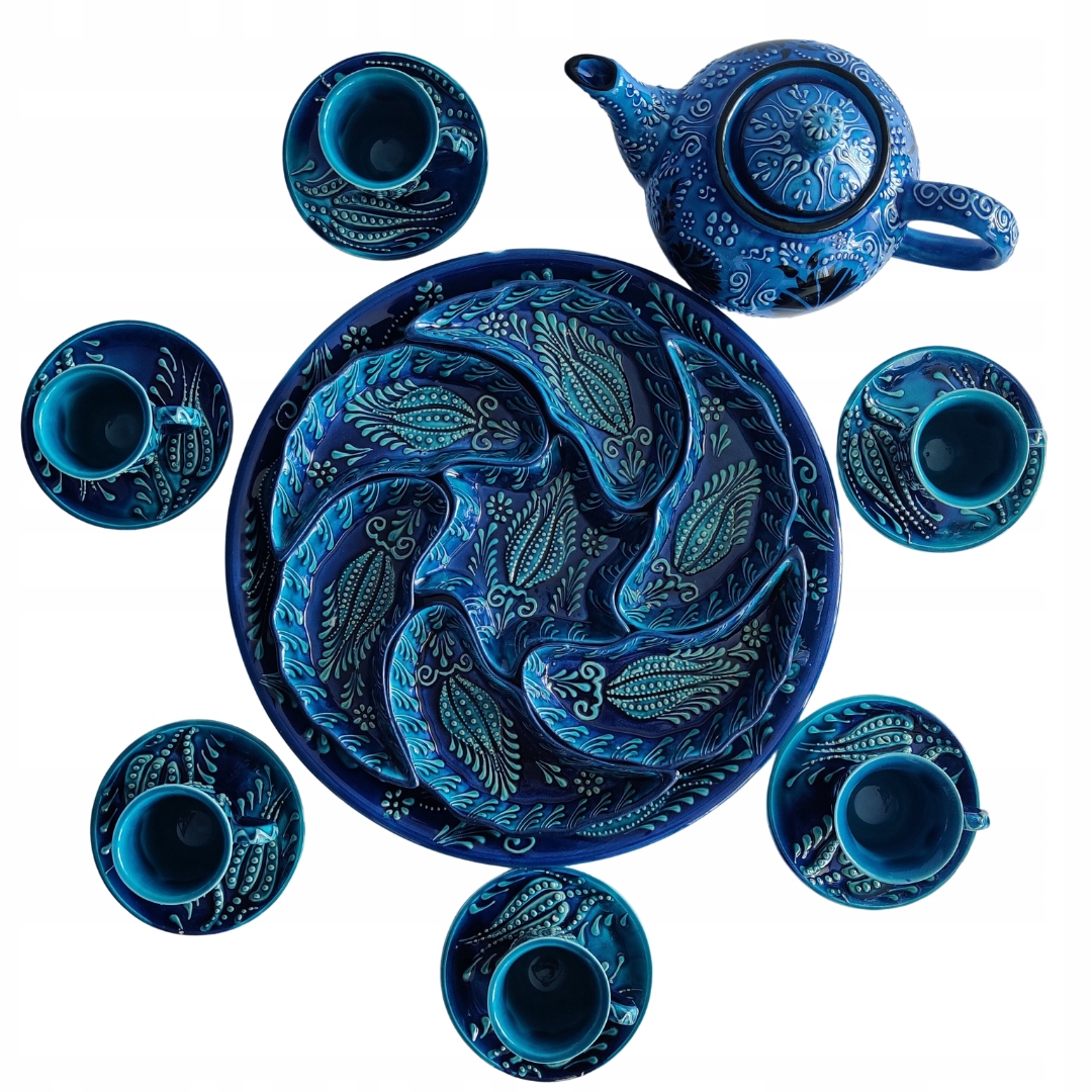 Загальні назви: бірюзовий турецький чайник ручної роботи, декоративний чайник, кольоровий чайник, Набір для подачі, набір для подачі чаю з турецької кераміки, набір з турецької кераміки з малюнком, набір для подачі напоїв, кераміка Iznik
