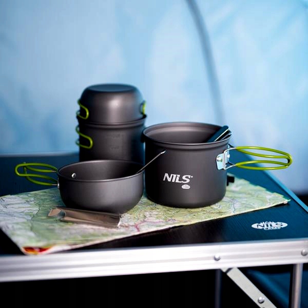 ✨Посуд виготовлений із міцного, стійкого до пошкоджень анодованого алюмінію. Він дуже міцний і легкий. І каструлі, і миски сконструйовані таким чином, щоб легко поміщатися одна в одну, що полегшує їх упаковку та транспортування. Ідеальне рішення для тих, хто хоче безкомпромісно насолоджуватися принадами приготування їжі на лоні природи. Крім того, їдальня має складні ручки, покриті утеплювачем, що запобігає випадковим опікам при відставленні посуду від конфорки. У комплект також входить практична кришка для їдальні.✨