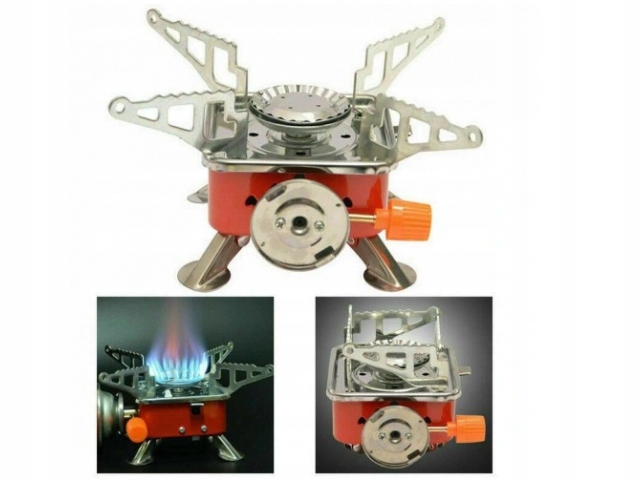 Міні-пічка туристична на газових балонах/картушах. Малий розмір ідеально підходить для туризму, подорожей, скелелазіння та їзди на велосипеді. Оснащений п’єзоелектричним розпалюванням, складними ніжками та чотирма міцними металевими складними кронштейнами під посудиною.