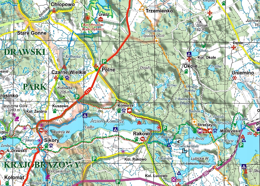 Описова частина не включала плани міст (Щецинек, Борне). Sulinów, Biały Bór і Barwice ), а на їх місці були фотографії та описи кількох десятків туристичних об’єктів – пам’яток, озер, заповідників і музеїв, які варто відвідати в околицях Щецинека.