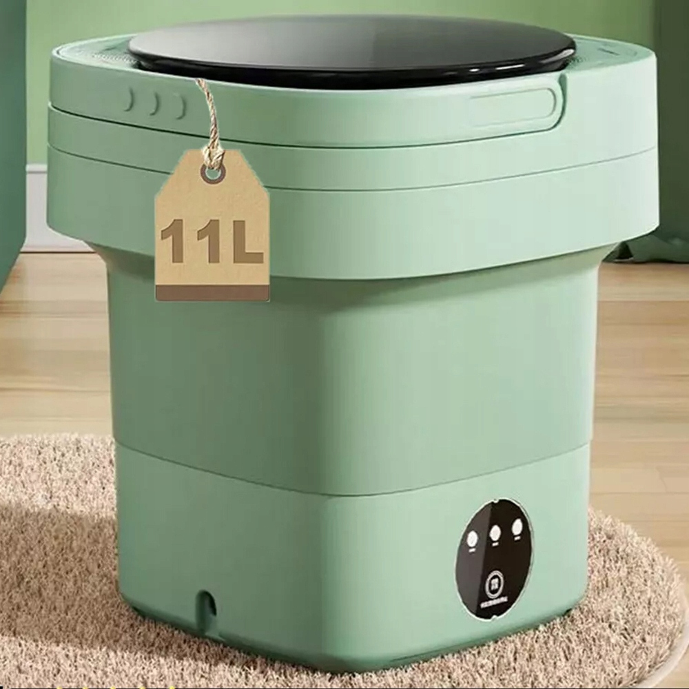 пральна машина 11 л великого складання, збільшуйте шкарпетки для нижньої білизни дитячий одяг Маленька міні -пральна машина 11L Зелений (зі стіком + кошику з капанням)
