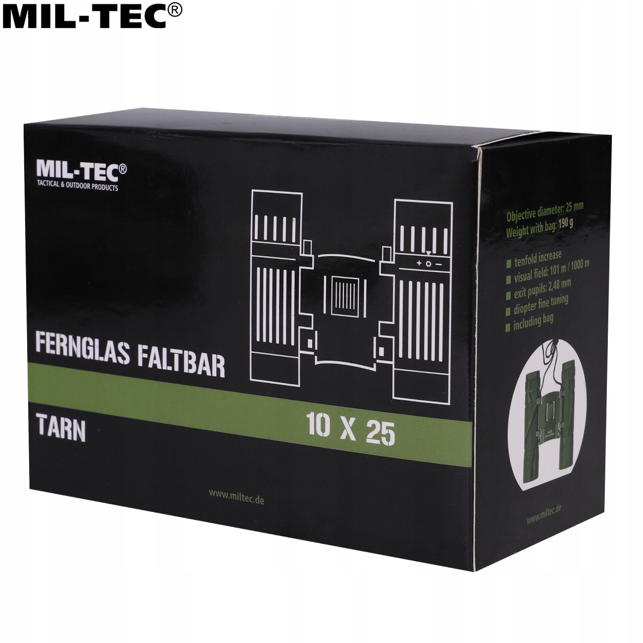 Тактичні біноклі 10x25 Niemiec Brand Mil-Tec забезпечує чудову яскравість та різкість зображення, зберігаючи низьку вагу структури. Завдяки невеликих розмірів та маси він буде працювати як ідеальне обладнання, забезпечуючи швидкість та простоту використання. забезпечує контраст, глибину та вірне відтворення спостережуваного об'єкта. Суспільство 4-8 dptr. М'яка кришка навколо ока не стискається під час використання, дозволяє проводити тривалі та зручні спостереження. З іншого боку, прикріплений до липучкової кришки має петлю ременя , через яку ремінь може бути розроблений з штанів. Набір включає тканину для очищення лінз.