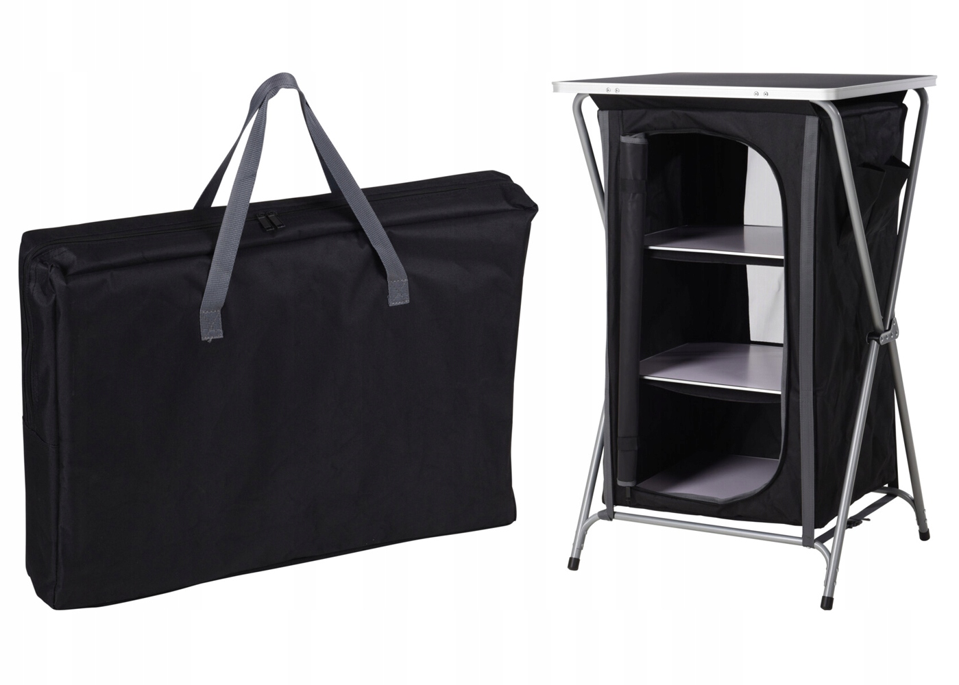 Ви шукаєте легкий портативний гардероб, до якого ви зможете приховати різні речі в кемпінгу чи під наметом? Туристичний гардероб, складений з 3 поличками 60x53x97 см.