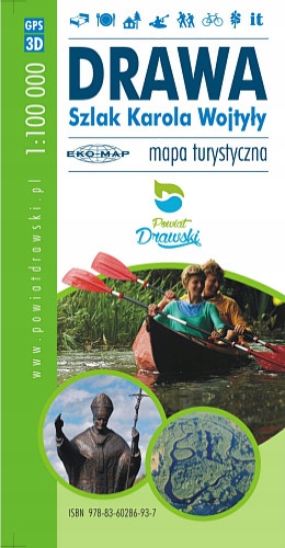 Ще одна пропозиція видавництва «ЕКО-МАП» – перевидана байдаркова карта Драви назви з 2016р. Аркуш охоплює всю байдаркову трасу. священик Кардинал Кароля Войтили, тобто маршрут від Чаплінека через Дравське озеро, Злоценець, Дравско-Поморське, Любеське озеро, полігон Дравско, Дравно, Дравський національний парк і Дравський ліс. Щоб вмістити таку велику площу в одну публікацію, використовувався масштаб 1:100 000, зберігаючи топографічну деталізацію, що відповідає масштабу 1:50 000. Карту було поміщено в жорсткий прозорий футляр із фольги.
