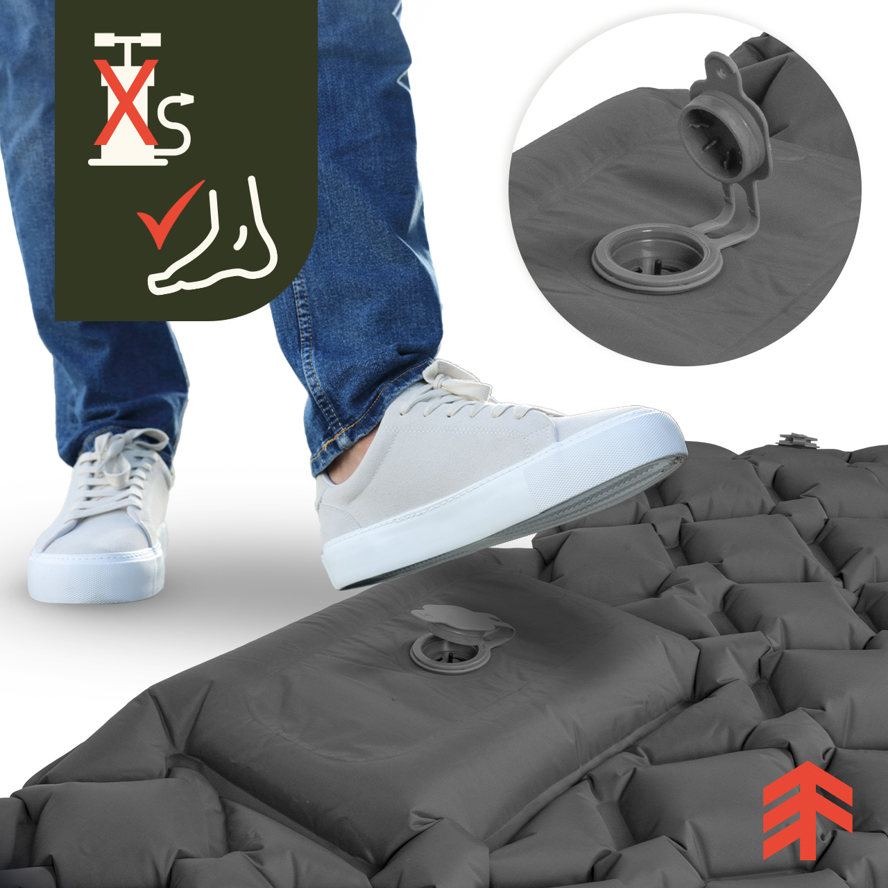 Цей легкий і комфортний туристичний матрац має вбудований насос -ніг, що дозволяє швидко і без зусиль -лише кілька пресів з ногою.