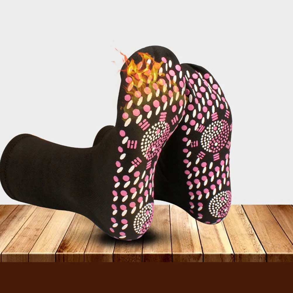 Самогріючі шкарпетки виготовлені з практичних і міцних матеріалів. У нижній частині шкарпеток є нагрівальна структура, яка дозволяє зберегти тепло в холодні дні. Ефективно знімають біль і втому в ногах, регулюють роботу нервової системи і забезпечують масаж стоп.