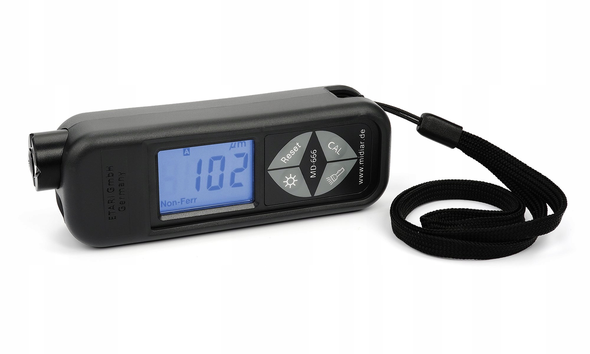 Вимірювач товщини фарби MD 666 — це остання модель 2018 року, розроблена компанією ETARI GmbH у Німеччині. MD 666 є наступником розроблених нами пристроїв ET 111, ET111S і MD 07. Він поєднує в собі все найкраще з їх функцій. MD-666 призначений для вимірювання товщини фарб як на чорних (магнітних), так і на кольорових металах (немагнітних, алюмінієвих).