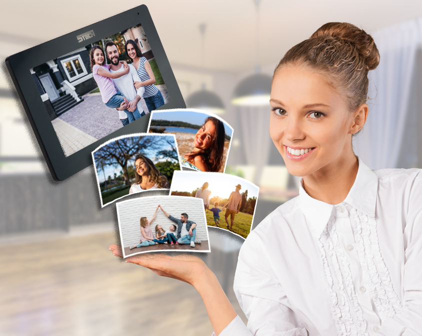✅ Фоторамка - встановивши додаткову картку microSD, ви можете перетворити кожен монітор у системі відеодомофона в зображення, фотографія відображатиметься в режимі очікування.
