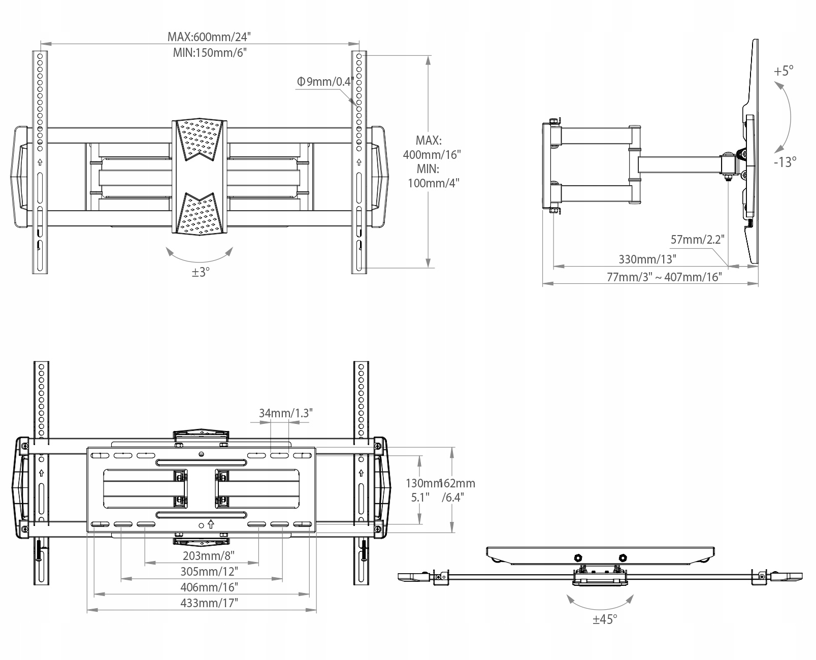 Завдяки унікальному дизайну вішалка має дуже широкі можливості регулювання для висування телевізора, що робить його неймовірно універсальним.