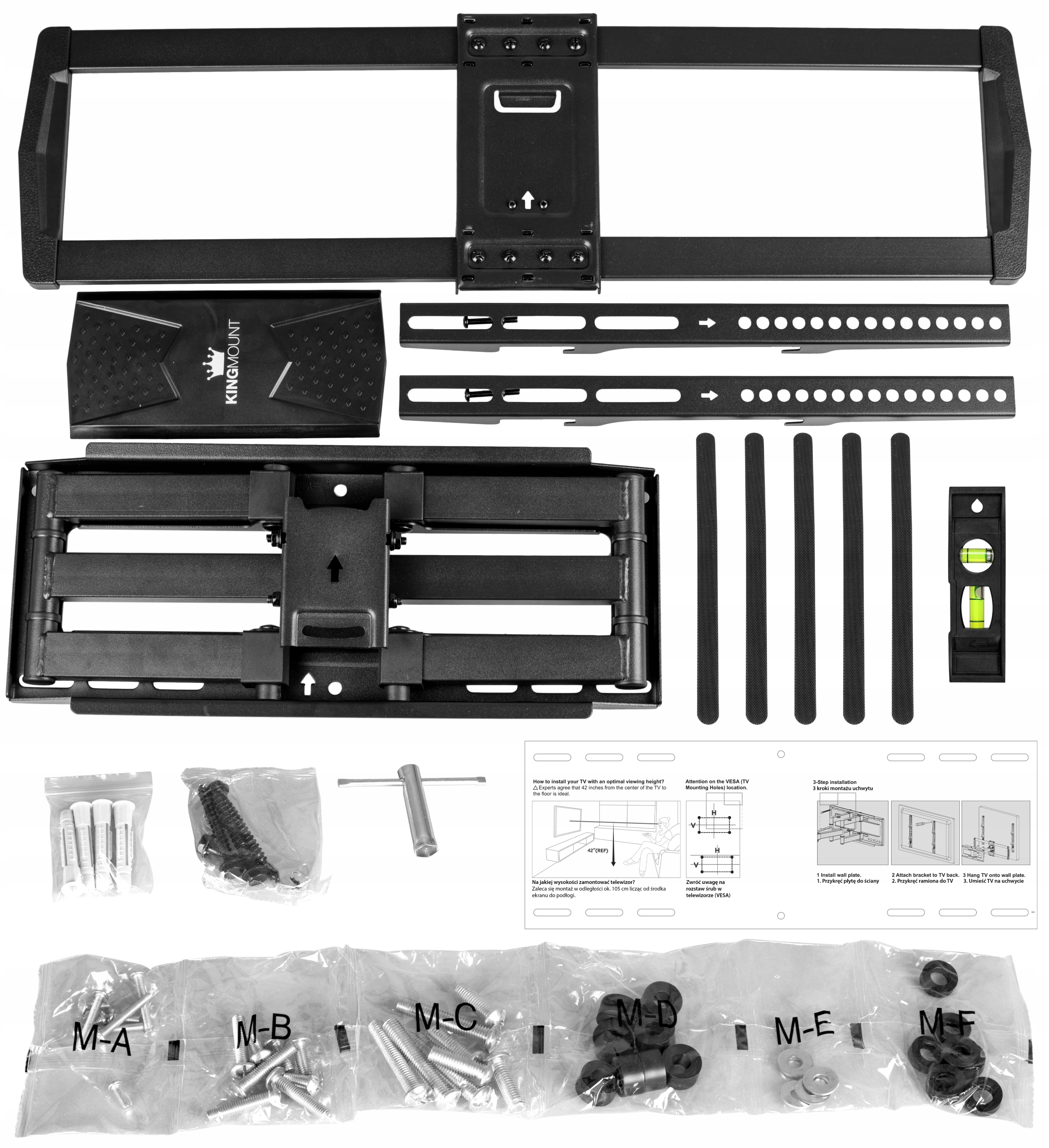 - Кріпильні гвинти входять у комплект містить універсальний набір кріпильних гвинтів для телевізора та набір гвинтів і дюбелів, рівень