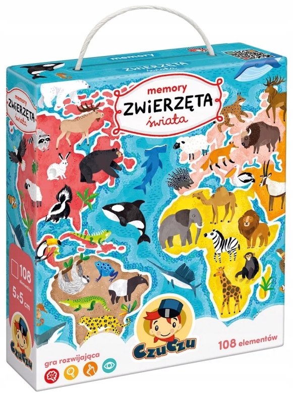 Тренуйте розум, тренуйте пам'ять і покращуйте концентрацію! CzuCzu Mempory Animals of the World — позачасова гра для дітей і дорослих — вона добре підійде як головоломка для найменших і перша гра, під час ігор в групі дитячого садка і під час зустрічі з друзями. У будь-який час і будь-де є час для розваг! Ви можете використовувати елементи для багатьох творчих ігор, рівень складності яких легко регулювати відповідно до віку та інтересів учасників. Грайте в класичну гру на пам'ять. Або грайте проти часу, шукаючи пари серед прихованих картинок. Хто швидше? Використовуйте елементи на свій вибір - наприклад, сортуючи жетони за кольором або типом тварин. А може, ви наважитеся зіграти в гру, використовуючи їх усі одночасно? Граючи в ігри з дітьми, наслідуйте тварин. Переконайтеся, що ви знаєте всіх тварин на ілюстраціях – дізнайтеся про них щось нове! Якщо у вас є Puzzlove CzuCzu Animals. Карта світу (посилання), використовуйте елементи, щоб додати до ілюстрації - це чудова гра зі спостереженнями, навіть для дітей. Ви завжди можете мати при собі купу своїх улюблених тварин — гра на пам’ять — чудовий спосіб позбутися від нудьги під час подорожі, у залі очікування або чудова ідея для гарного та розумного подарунка.