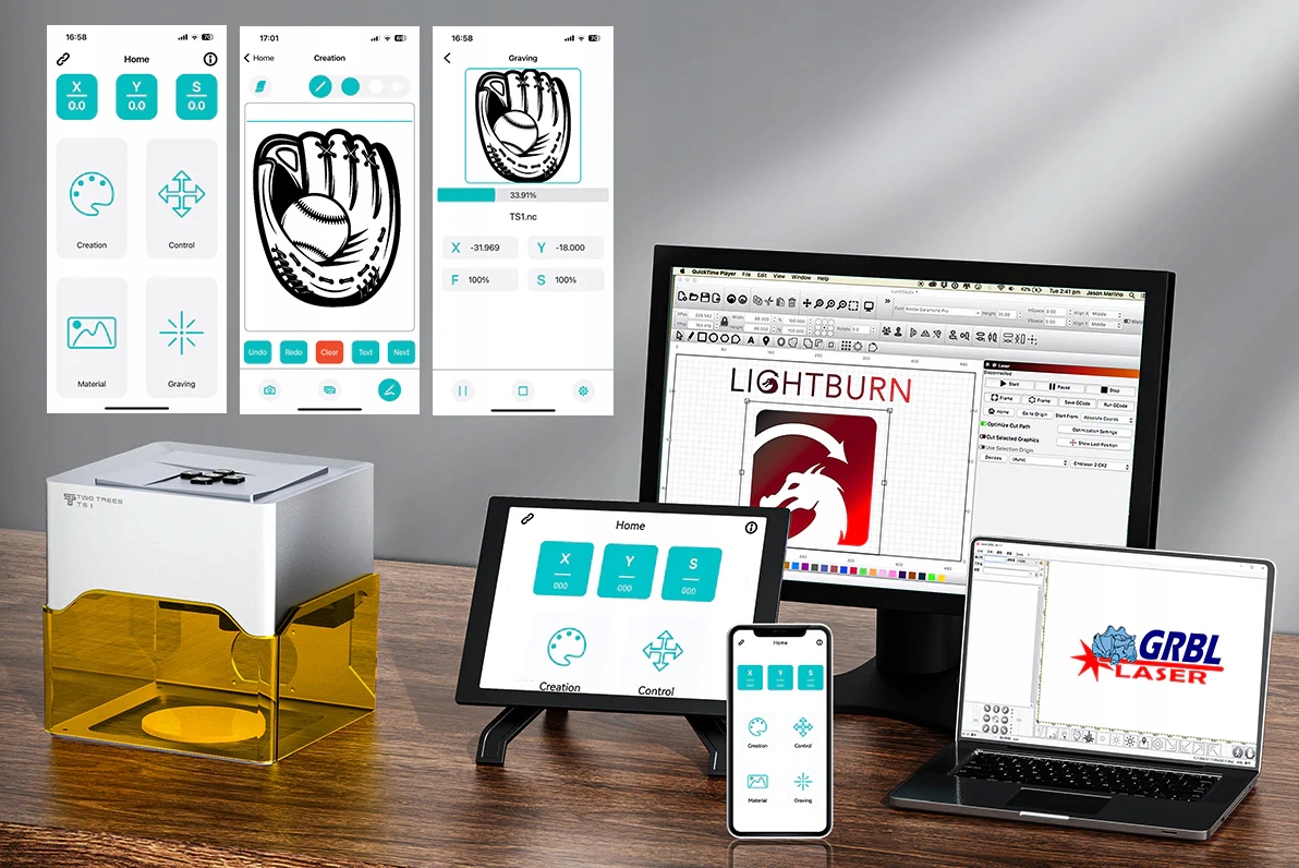 Пристрій має невеликий розмір і його легко транспортувати та встановити. Його можна використовувати через мобільний телефон або комп'ютер, користувачі можуть легко вибирати або редагувати шаблони та почати гравірування одним клацанням - ідеальне рішення для творчих дій у будь -який час і в будь -якому місці.
