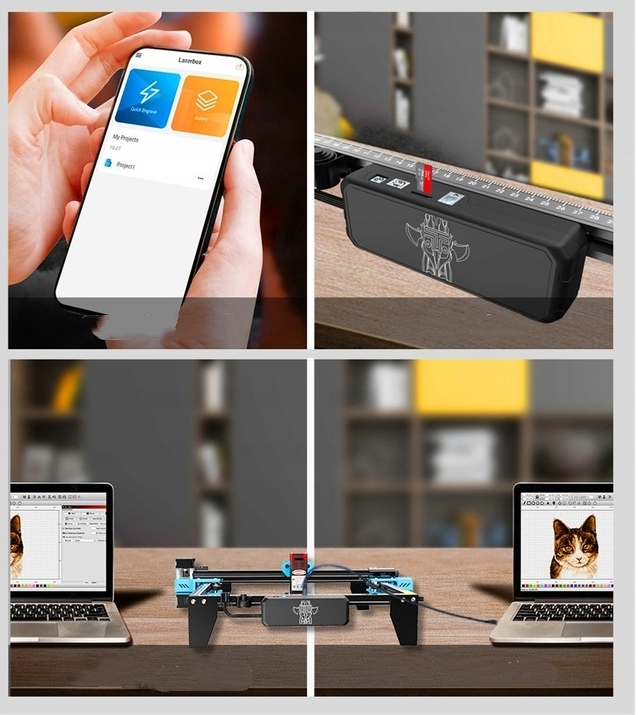 Завдяки вдосконаленій інтелектуальній мікросхемі ESP32 ця гравірувальна машина досягає швидкості до 500 мм/с. Два крокових двигуна по осі Y забезпечують точне позиціонування та більш плавні лінії. Інтегровані Wi-Fi і Bluetooth дозволяють легко керувати мобільним за допомогою підтримуваних програм. Відрегулюйте положення верстата, щоб лінії гравіювання були плавнішими.