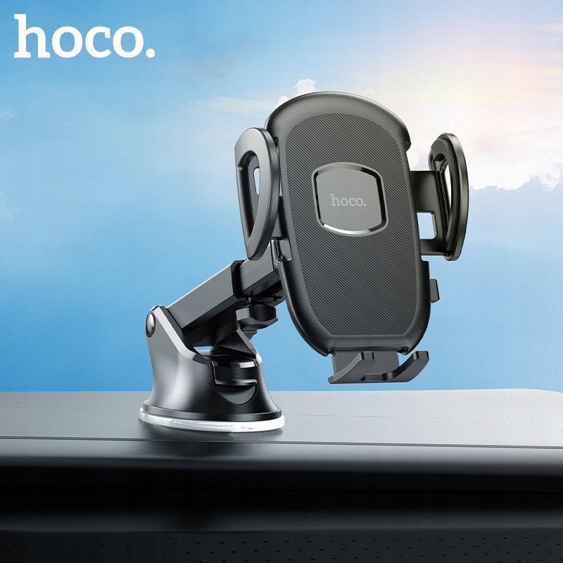 hoco. H9 General - автомобільний затискний тримач для телефону, призначений для монтажу на панелі приладів / кабіні / консолі / вікні автомобіля, оснащений регульованим кронштейном, що дає необмежені можливості регулювання та адаптації під водія для власних потреб, а також шарнірної форми, що кріпиться на силіконовій присосці з затискачем, призначений для мобільних телефонів / смартфонів або планшетів вагою не більше 0,5 кг і розміром дисплея від 4,5 до 7 дюймів. Ручка також має регульовані нижні ніжки.