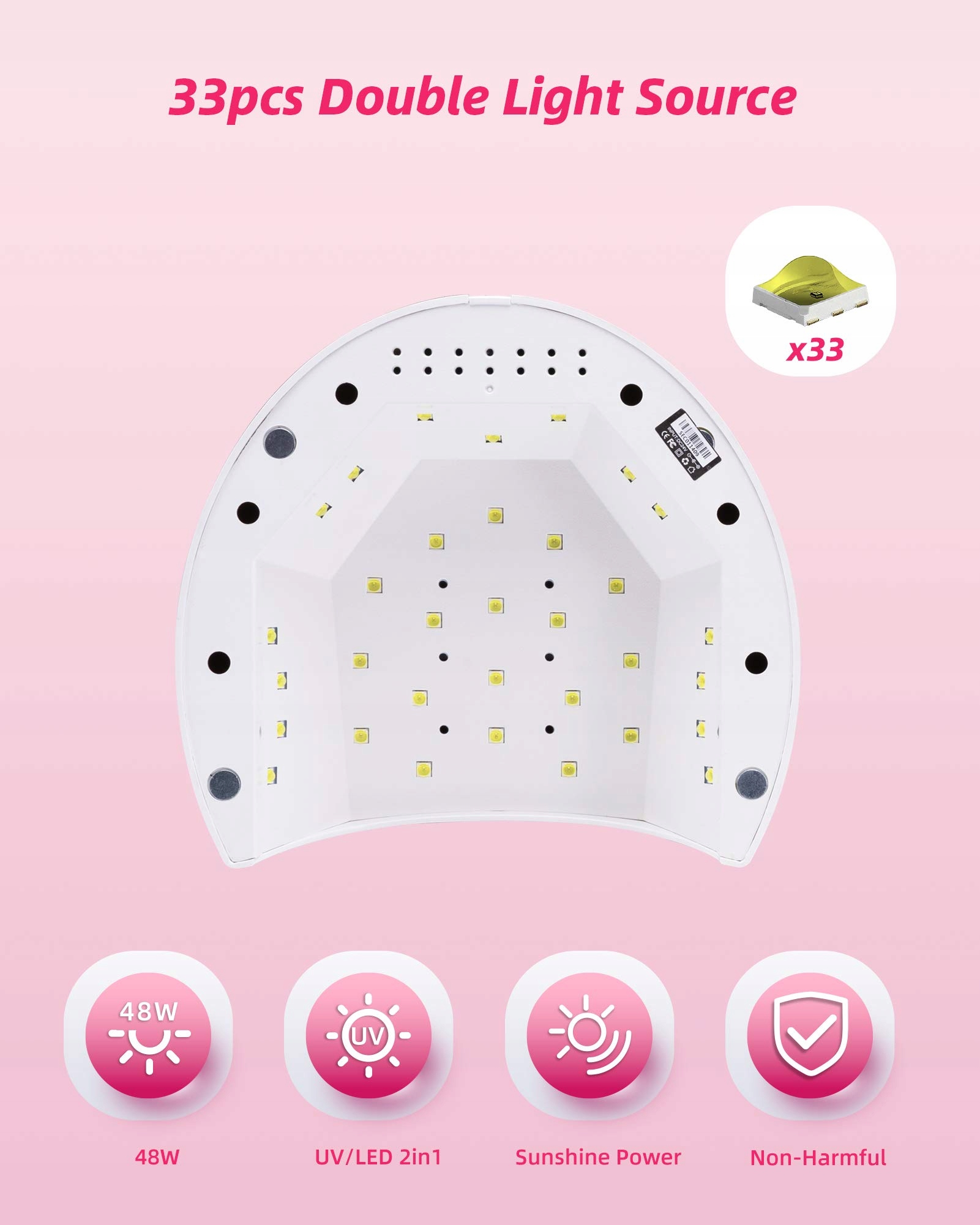 - Висока потужність 48 Вт: надпотужність 48 Вт з інтелектуальним, безболісним дизайном лікування та швидким висиханням дозволяє досягти ідеального манікюру за лічені хвилини. 10-секундний режим швидкого сушіння, практичний дизайн, можна використовувати вдома або в професійному салоні