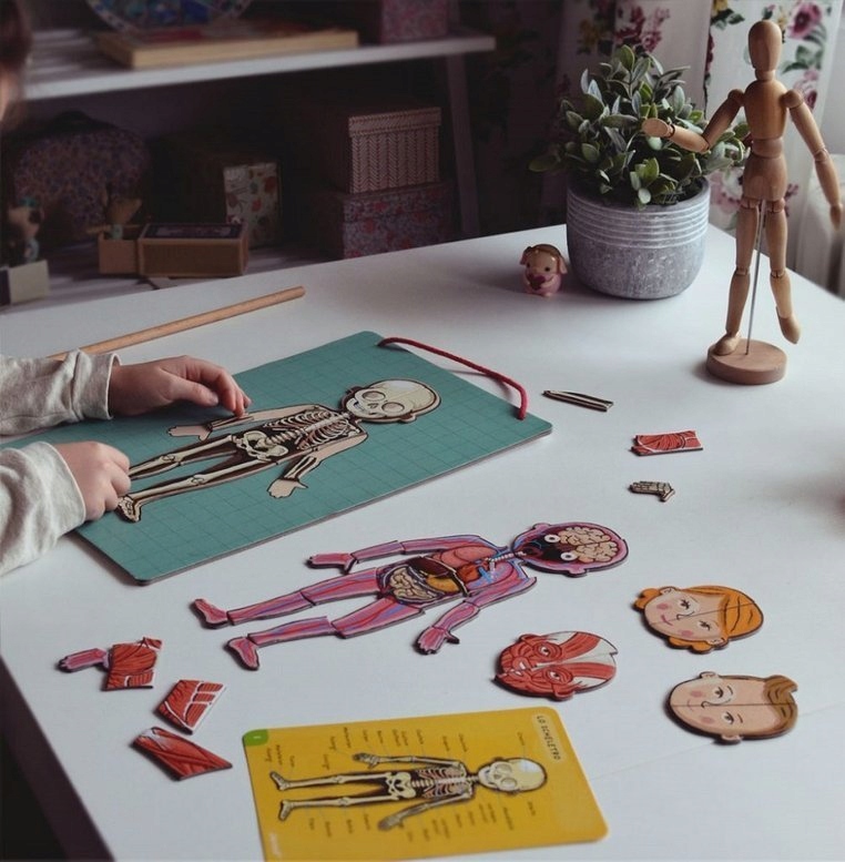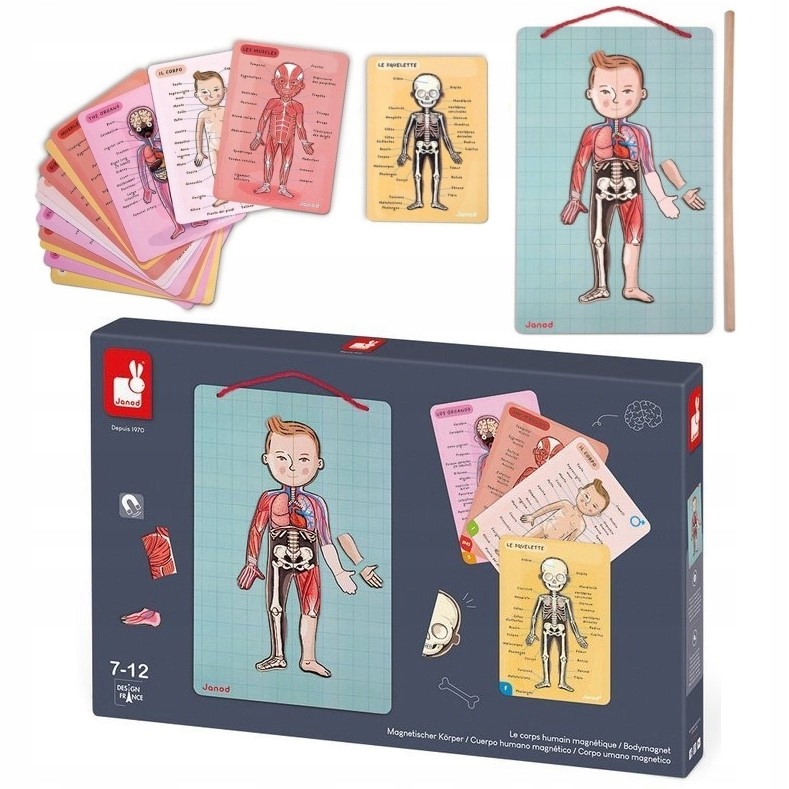 Магнітний пазл "Тіло людини" від французького бренду Janod - це навчальний пазл, який навчить вашу дитину будові людського тіла 12 мовами (включаючи польську, англійську, німецьку, італійську та Іспанська).